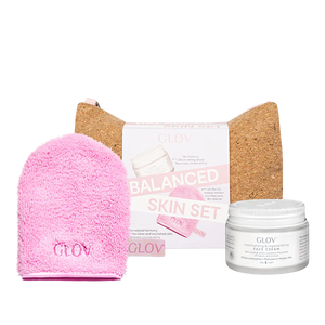 GLOV Balanced Skin Set - skincare set with a replenishing face cream and the patented makeup removing and skin cleansing On-The-Go mitt